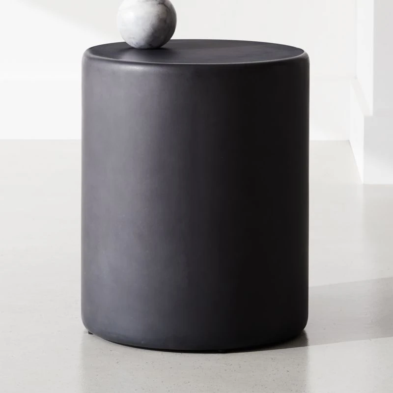 Beyond multitasking: dark grey concrete stool by Jennifer Fisher works indoors or out—and doubles as a side table, too. “These stools are great. When you want to sit, you stay put, but you can pick it up and move around the party when you want, too,” says Jennifer. CB2 exclusive.