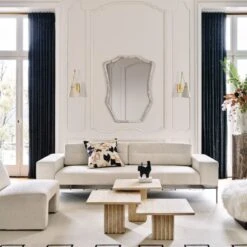 Boucle takes on camel-colored hues in loungeable sofa designed by Ross Cassidy. Bubbly in shape with rounded legs of solid bleached oak and an oversized silhouette made for spreading out. CB2 exclusive.