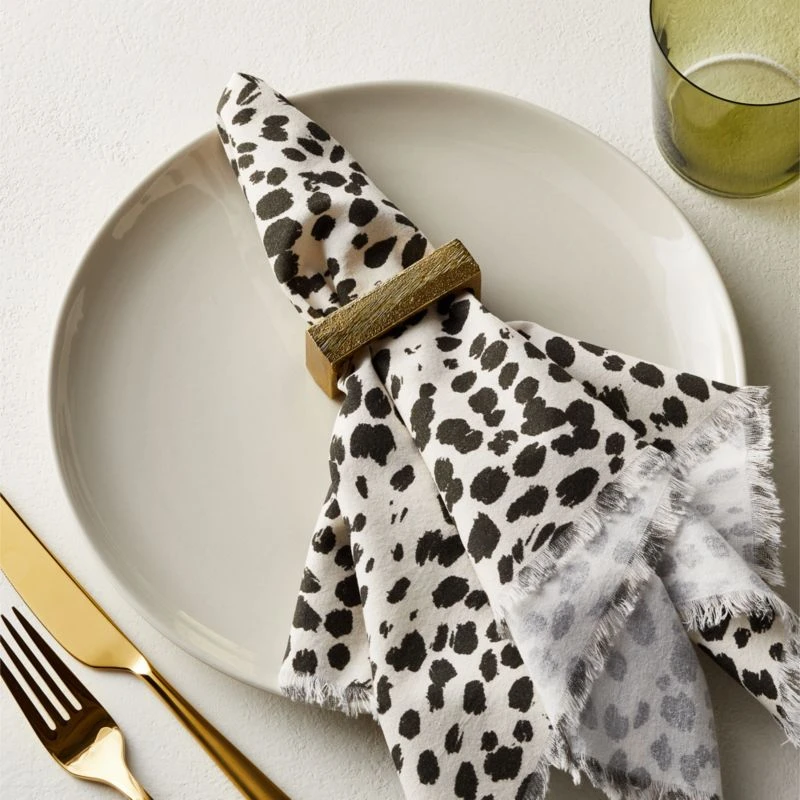 Made from cast aluminum with an electroplated gold finish, rectangular napkin “rings” are like jewelry for your table. Unique shape brings a fresh, modern vibe to any place setting. CB2 exclusive.