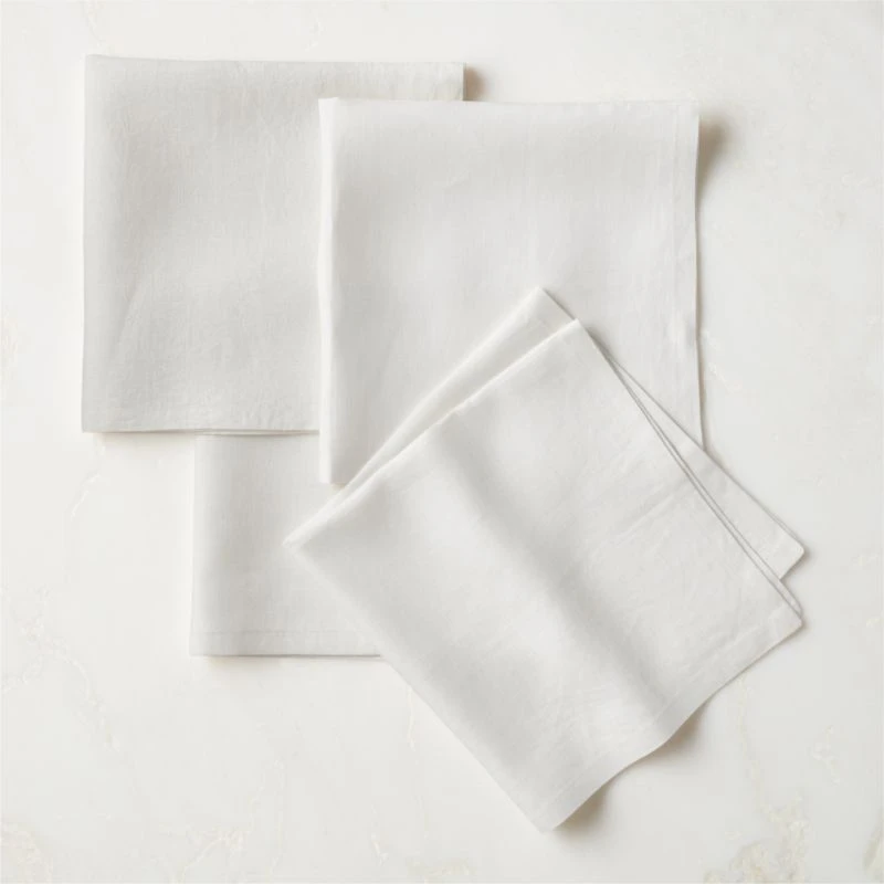 100% natural linen minds your manners in clean white with a finely finished stitched edge. bolt white linen napkins set of four is a CB2 exclusive.