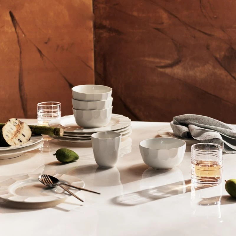 A subtly textured edge makes this white porcelain dinner plate stand out on its own, but it’s particularly stunning when layered with other pieces from the Chert dinnerware collection. Created by award-winning designer garth roberts of garth™, this minimalist dinner plate is a clever twist on classic porcelain dinnerware. “The plate set has a delicate and modern silhouette that is contrasted by crude scallops on each object’s rim,” roberts says of the Chert collection. “The texture echoes the aesthetic of hand-chipped stone objects by early man.” CB2 exclusive.