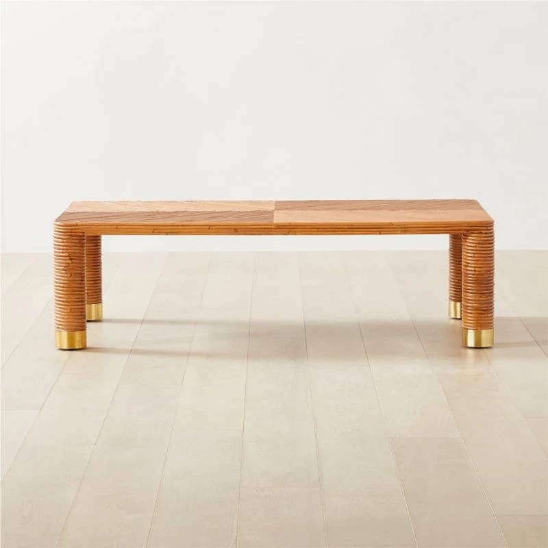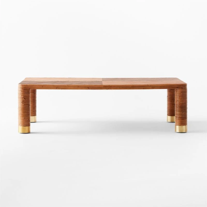 Designed by Mermelada Estudio in Spain, rectangular coffee table is artfully enveloped in slim stems of rattan. Lacquered brass leg caps add polish, while natural materials offer an inviting feel. As nonchalantly stylish as a vintage discovery you’ve always dreamed of unearthing at Barcelona’s legendary Mercat dels Encants market—only here, it’s in mint condition. CB2 exclusive.
