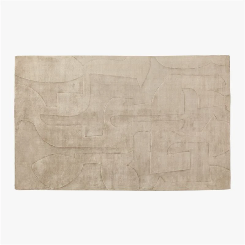 Handloomed in 100% TENCEL™ Lyocell, lush area rug is embossed with a subtle abstract design inspired by Brazilian modernism. Known for its natural comfort, sustainable TENCEL™ Lyocell offers softness with a subtle sheen, creating tonal highs and lows as it catches the light. CB2 exclusive.