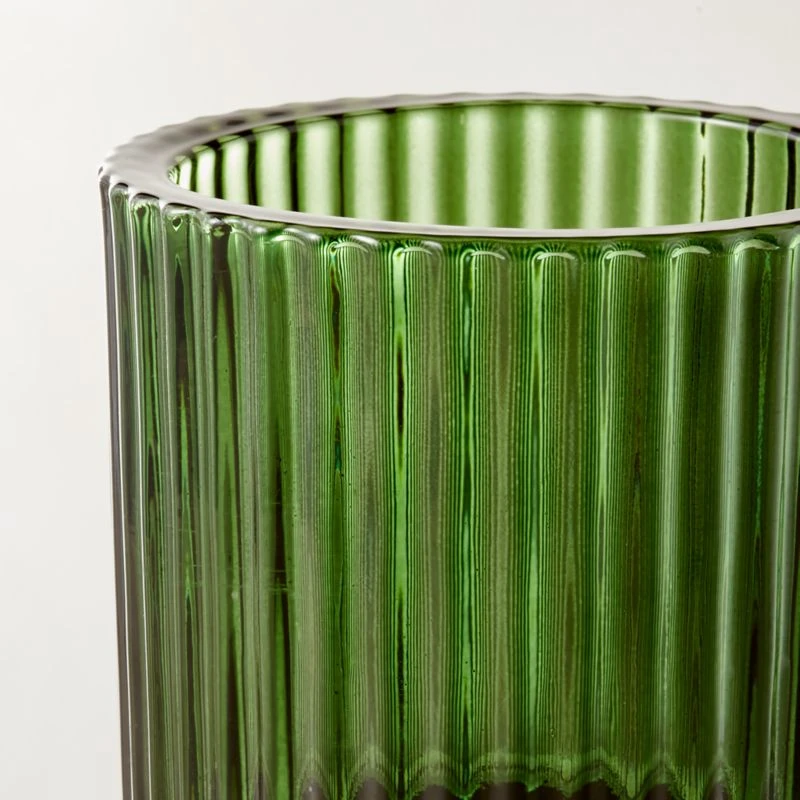 We can’t get enough of ribbed/fluted details, which add a unique design feature to this set of six simple green glass tealight candle holders. Group multiples to make an impact; can be used indoors or out. CB2 exclusive.