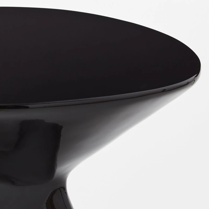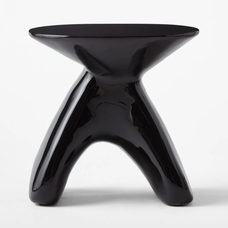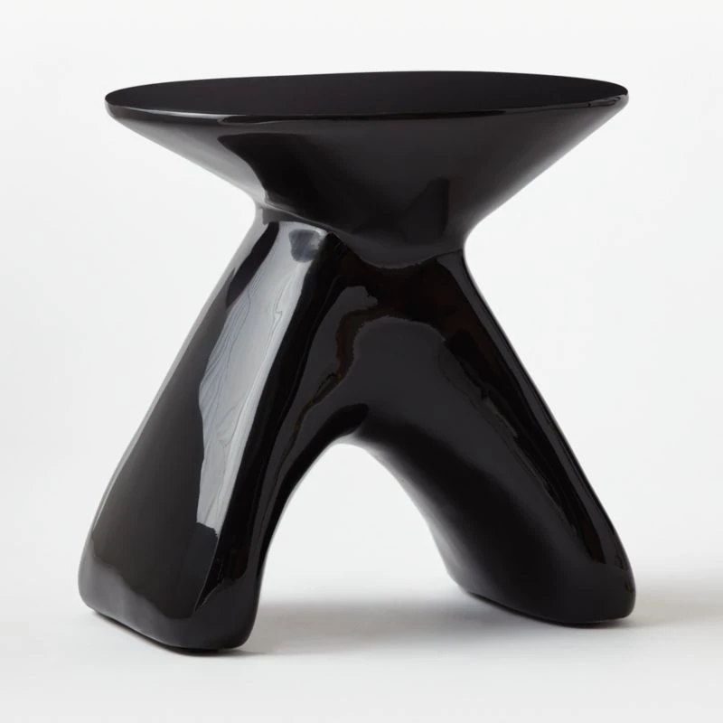 The Forcella Side Table brings a sculptural sensibility to any room. Amorphic base meets the flat surface at a well-proportioned taper, all finished in a high-gloss black. With a solid core construction, designer Caleb Zipperer has given the table substantial heft—a nice balance to its organic winsomeness. Can be used outdoors with proper care. CB2 exclusive.