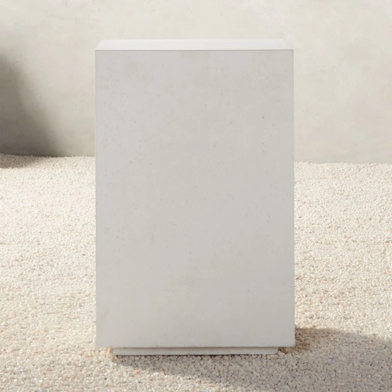 Ivory concrete takes shape as a minimal side table with strong industrial and sculptural vibes. Mixes easily with any outdoorscape. CB2 exclusive.