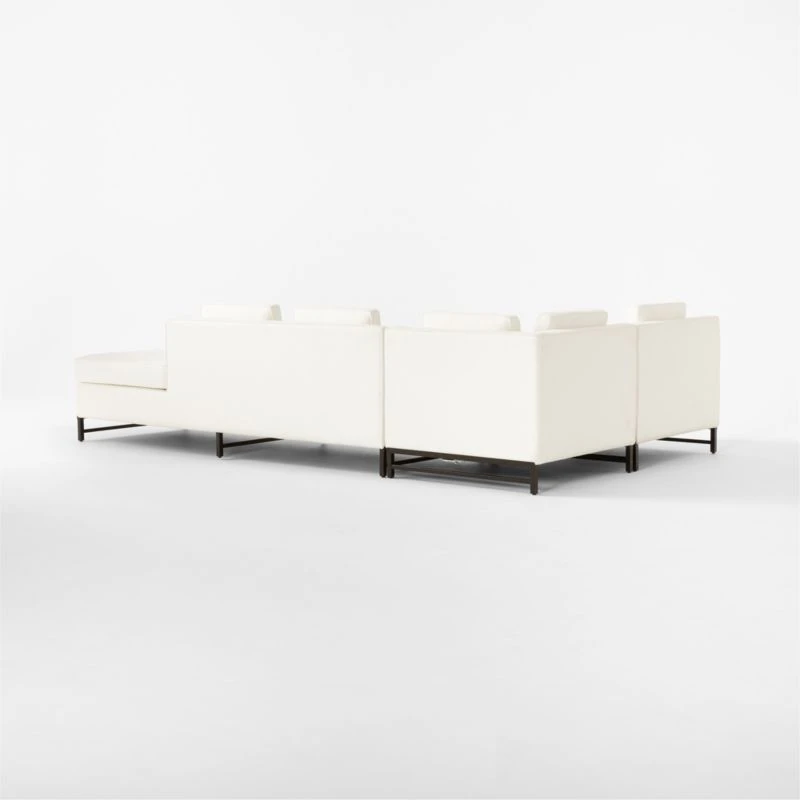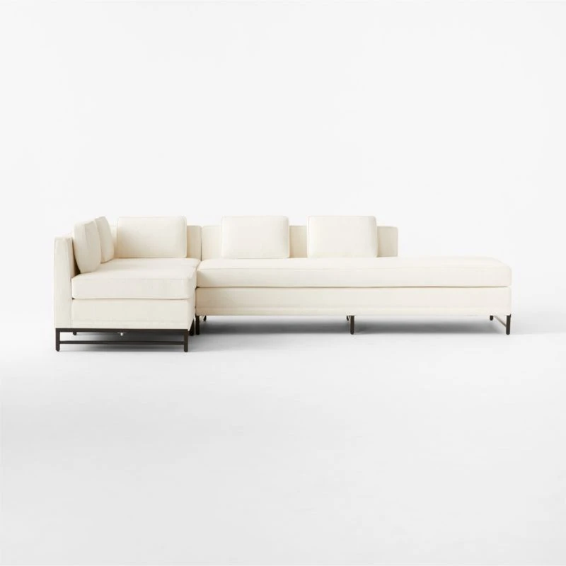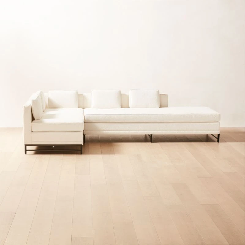 Like all Paul McCobb designs, this sectional sofa is quintessentially midcentury with its clean lines, simple silhouette and attention to detail and craftsmanship. Sectional features luxe cotton-blend upholstery in an ivory micro-bouclé, black satin metal legs and an FSC ®-certified frame. The design’s large scale makes quite the statement when arranged as a full sectional, and individual pieces are versatile enough to work well on their own. CB2 exclusive.