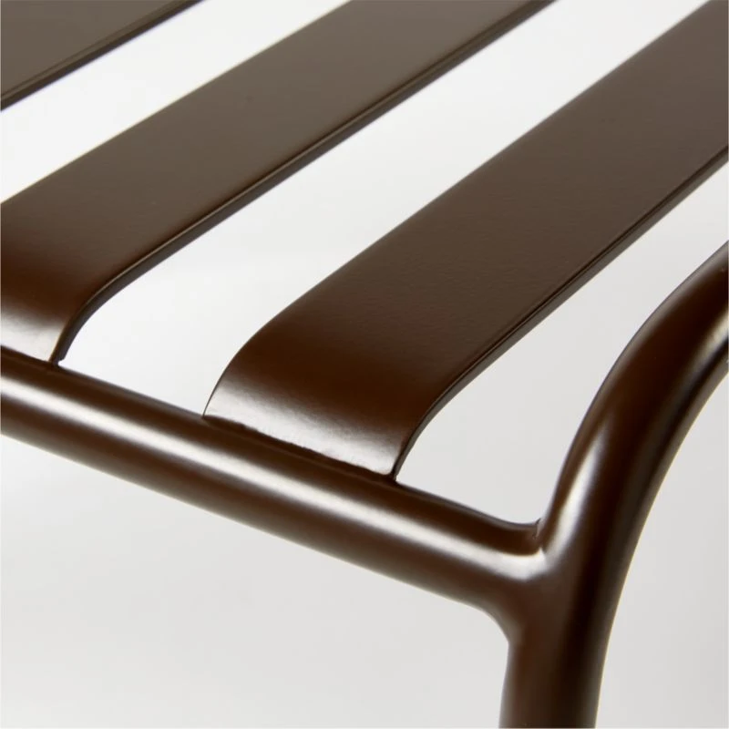 A nod to French Industrial design, this chic outdoor ottoman designed by Jannis Ellenberger brings vintage resort vibes to your outdoor space. Iron tube is bent into a minimalist frame and paired with a tonal bronze cushion for a modern neutral statement. Cushion velcros to the frame for easy removal and cleaning. CB2 exclusive.