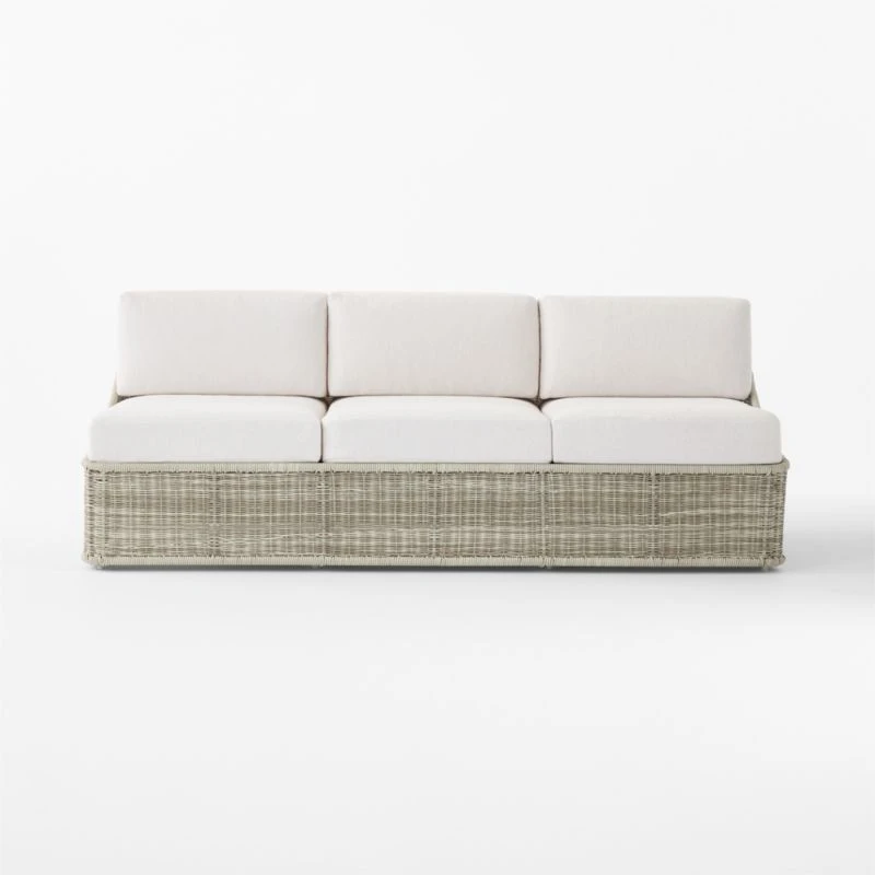 Nino Ivory Rattan Outdoor Sofa with Ivory Boucle Sunbrella® Cushions 84″Wx37″Dx26″H