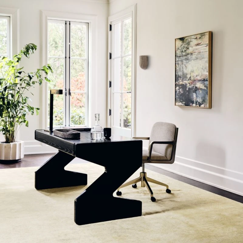 Perno 2-Drawer High-Gloss Black Oak Wood Desk