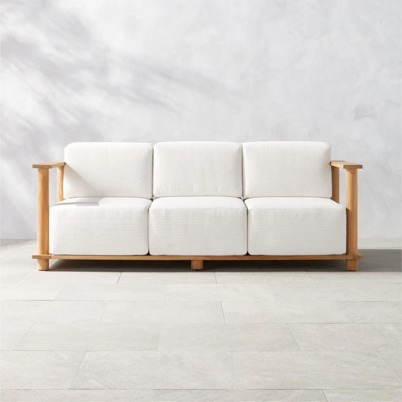Pinet Teak Outdoor Sofa with Textured Ivory Perennials® Cushions 84″Wx39″Dx27.25″H