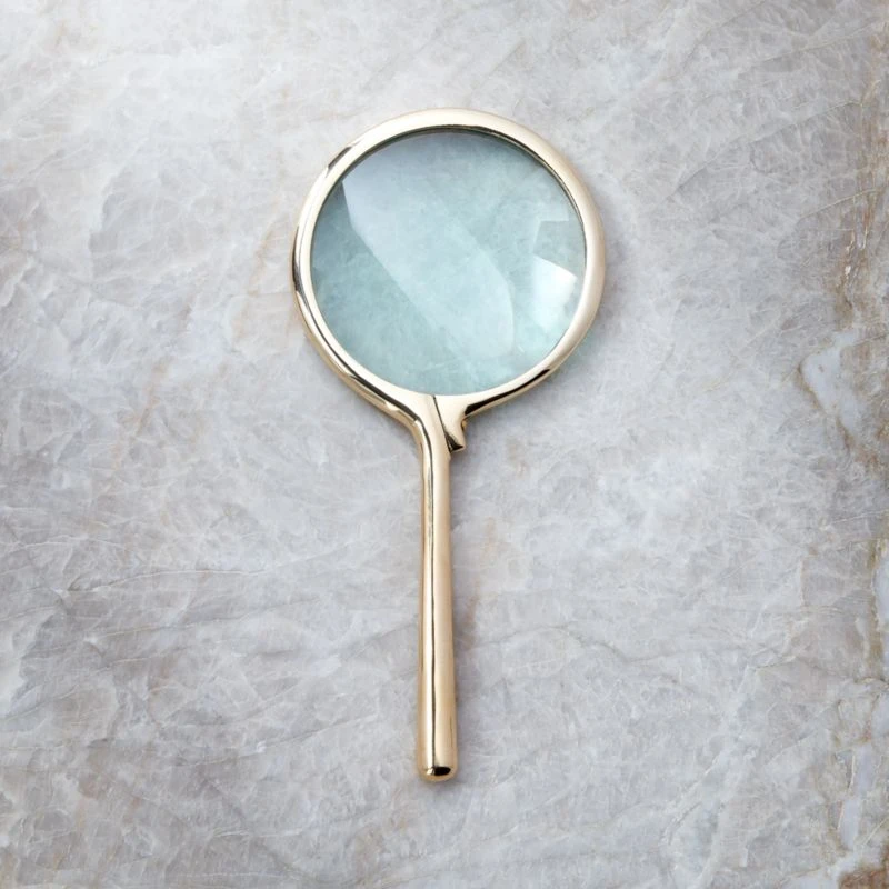 Magnifying glass offers a beautiful perspective in solid unlacquered brass, a living finish that will patina beautifully over time. Clever as a paperweight or used to enlarge small print in the home office or living room. CB2 exclusive.