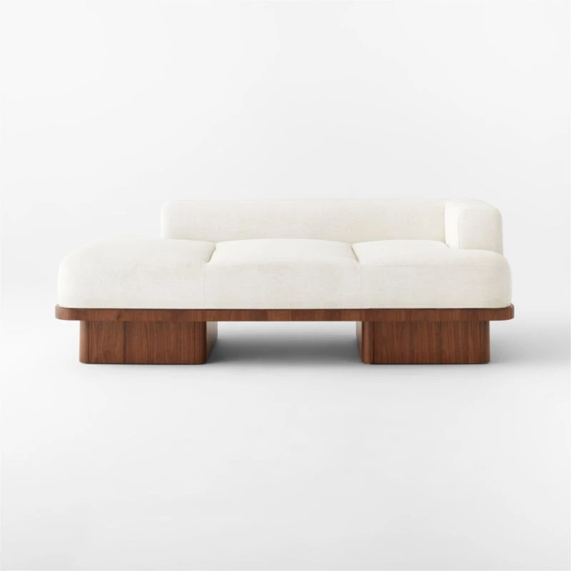 Vintage-inspired daybed by Adam Rogers brings the cool parts of the ’70s back in a generously scaled silhouette. Luxe, white Cypton performance fabric reads like a chenille with a hint of linen while the wood base sports a mid-tone walnut veneer that lets the vertical grain detail shine through. CB2 exclusive.