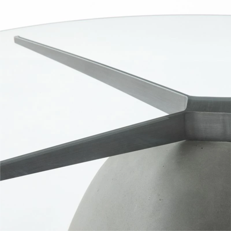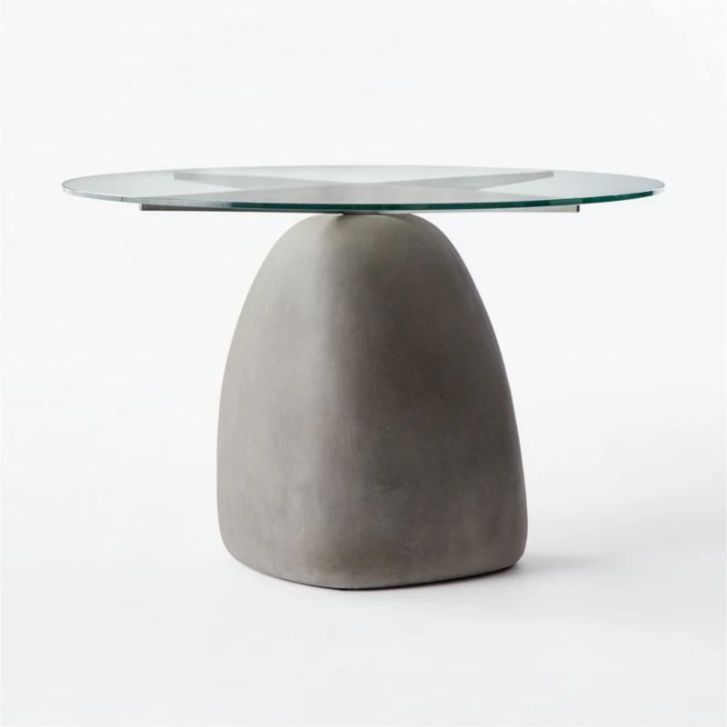 Stone Round Grey Concrete Dining Table with Glass Top 47″ dia. x 30.5″H